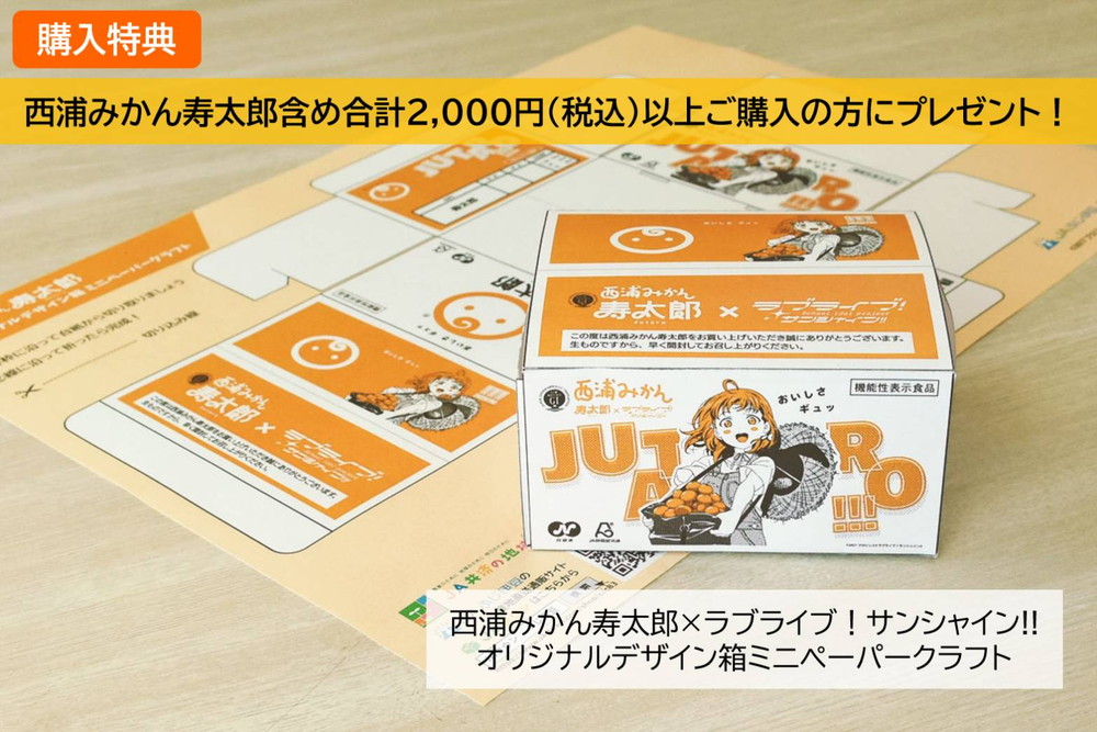 西浦みかん寿太郎含め合計2,000円以上ご購入の方に「『ラブライブ!サンシャイン!!』オリジナルデザイン段ボール箱ペーパークラフト」をプレゼント!