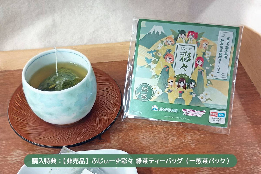 さらに、商品ご購入の方に、非売品「ふじぃーず彩々緑茶ティーバッグ(一煎茶パック)」をプレゼント!