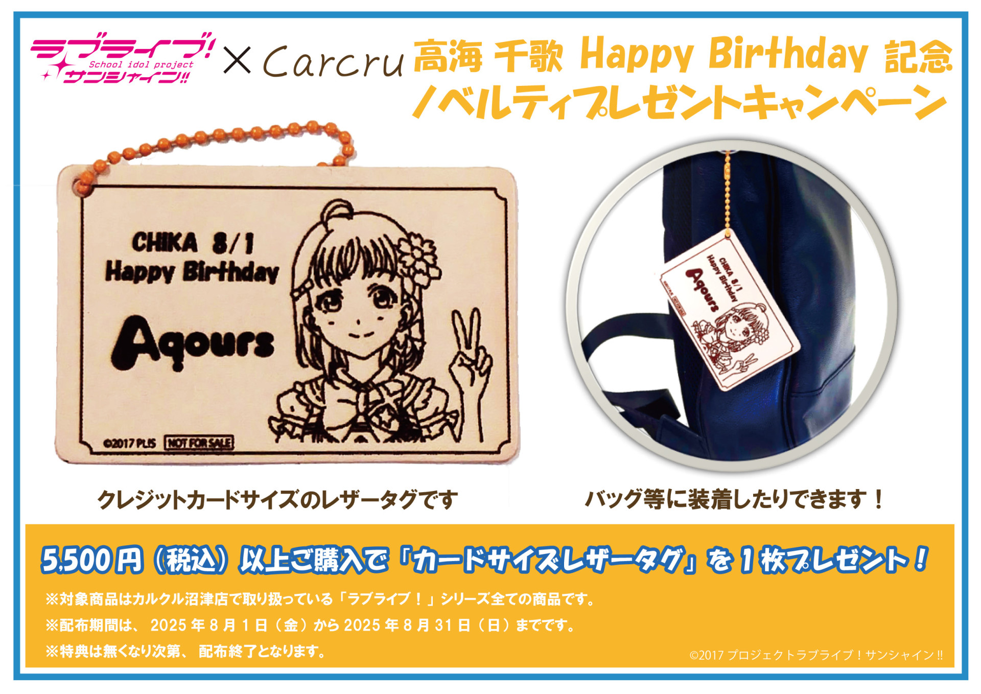 カルクルより、高海千歌バースデー記念ノベルティ配布のお知らせ
